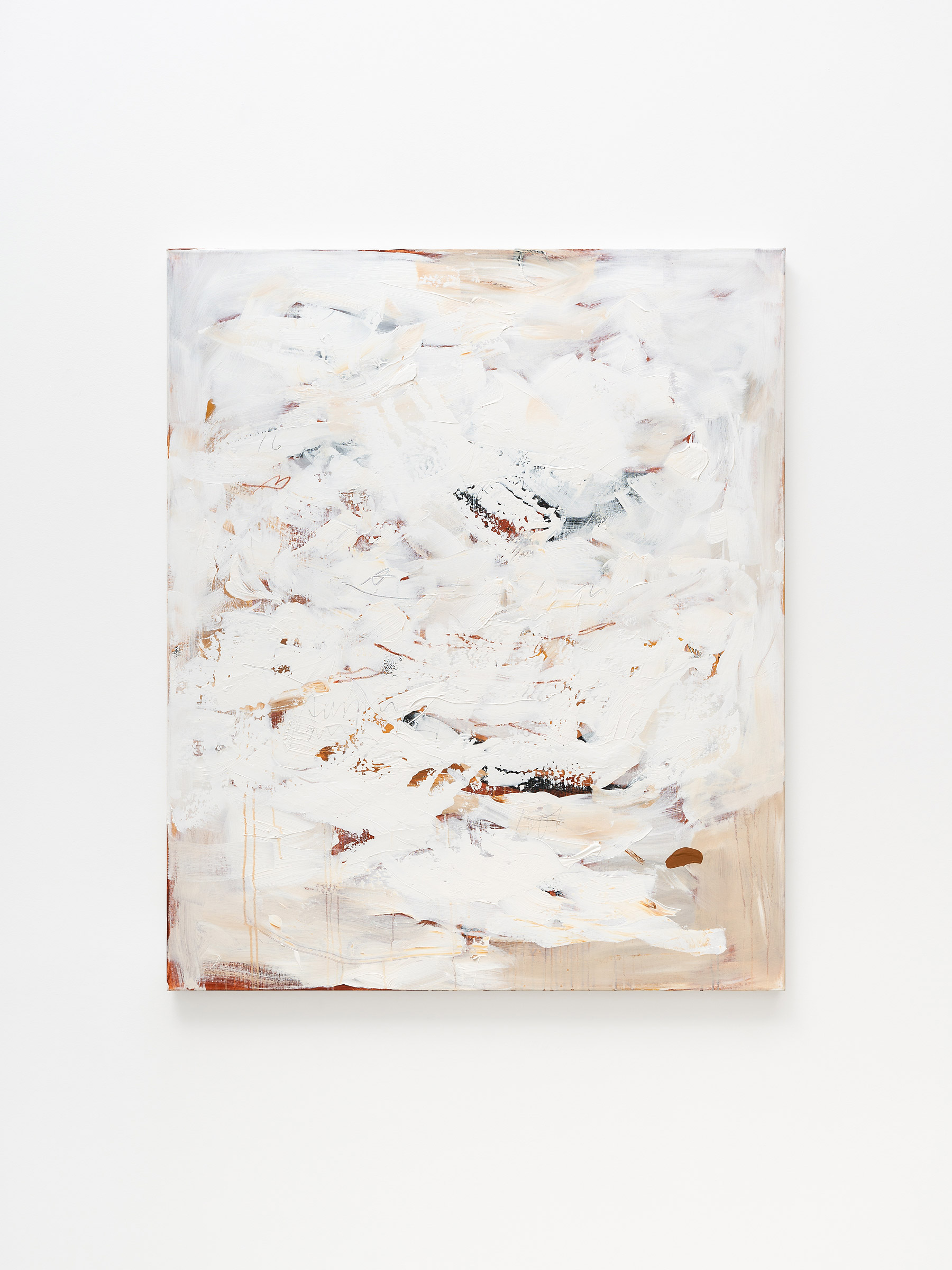 I don’t usually start with a fixed image in mind. The painting develops through a kind of dialogue — responding to what is already there rather than trying to impose something onto it. In that sense, the work is less about arriving at a specific result and more about staying in relation to the surface.