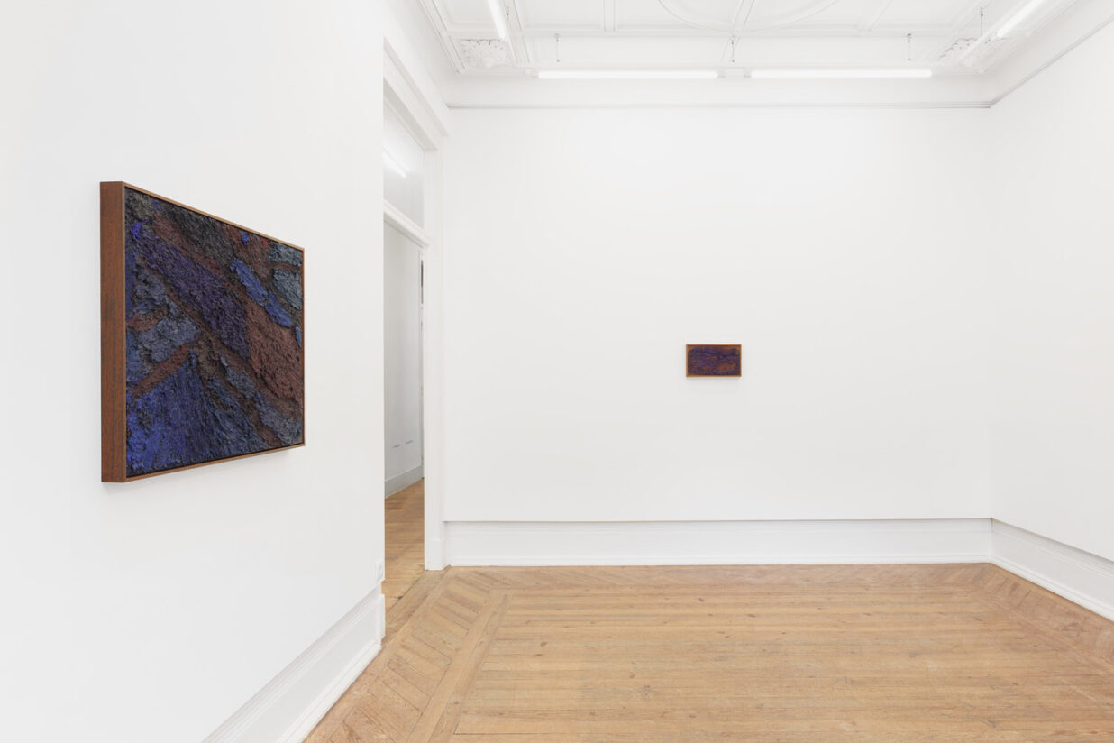 In this body of work Collins investigates the relationship between alchemy and objecthood in painting through his unique manipulation and moulding of surface and edge. Through interplays with oil, oil bar and raw pigment — alongside the use of unconventional tools for mark making — Collins pushes paint into foreign terrains. It becomes an unknowable substance. The paintings appear formed from living matter. Enigmatic deltas, operating within their own logic, both inside and outside of time.